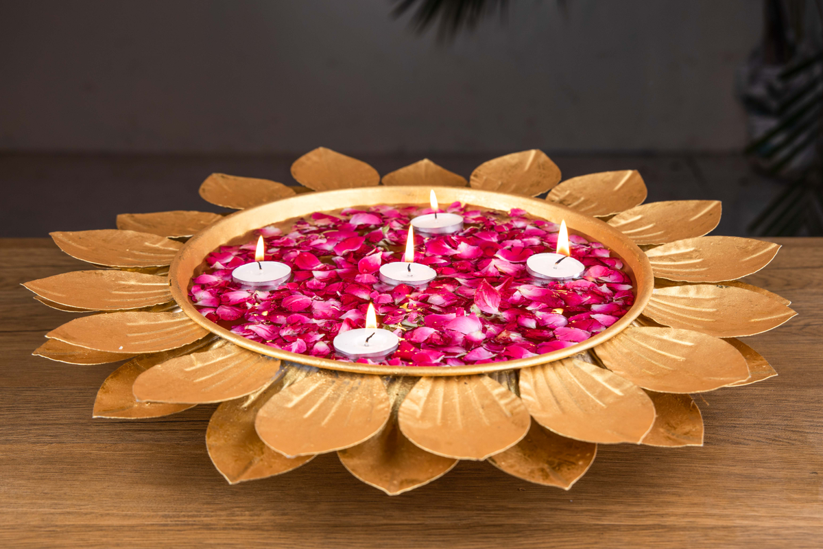 Handmade Lotus Shaped Urli; Candle and Floral Decoration Showpiece